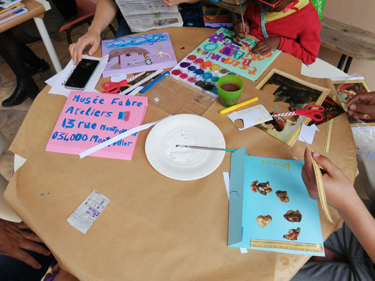 Même si les interactions occupent une place centrale lors des séances, les cours de FLS et d’alpha sont donc relativement “théoriques” et “formels” et se rapprochent ainsi des représentations de l’apprentissage des résident∙es qui ont appris dans des cultures d’apprentissage très traditionnelles. Toutefois, des ateliers transversaux sont régulièrement proposés au CADA le vendredi après-midi, afin d’apprendre de façon plus expressive, ludique et pragmatique. Par exemple, des ateliers d’arts plastiques ont été proposés tous les vendredis de février à avril 2021, autour d’une activité de Mail Art sur le thème du voyage et de l’exil (voir documentation associée), dans le cadre d’un projet regroupant deux structures partenaires : le Lycée Notre Dame de la Merci (avec des interventions sur des histoires mythologiques de voyage) et le Musée Fabre qui exposera les œuvres réalisées en juin 2021.